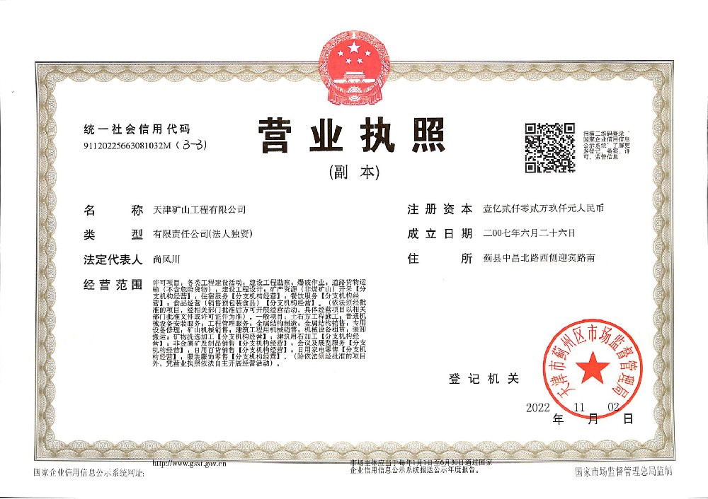 天津礦山工程有限公司(以下簡稱公司)始建于1965年,隸屬中國建材集團有限公司,是從事礦山總承包、礦山開采運營、礦山設計與咨詢、土石方爆破、生態恢復治理、鋼結構制作安裝、機電設備安裝以及工程測量的專業化礦山施工企業和礦山開采運營總承包服務商。具備礦山總承包和爆破雙一級資質。 公司始建于1965年,總部位于天津市···